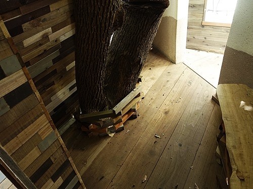 床から木が突き抜けている。