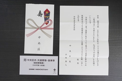 敬老のお祝い中央区内買物券(3000円)