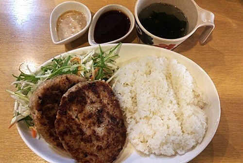 噂の「500円」ハンバーグのダブル定食(770円)
