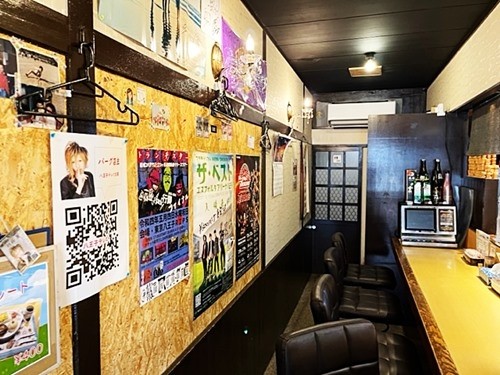 『注文を済ませてゆっくりと見廻すと、不思議な置物やポスターとメニューがバラバラに見える。地元八王子を中心に活躍する演劇や、音楽・スポーツのお知らせが所狭しと見えている。更に古いダーツの存在感が大きい。ワンコイン・レストランとしてTV放映されて大いに賑わった様子が見えるが、いまはラアンチ時間なのにお客が私1人とは寂しい限りだ』