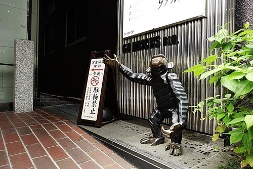 晴海通りの和光の2本裏の通りを入ると、左側にチンパンジーの彫刻がある。