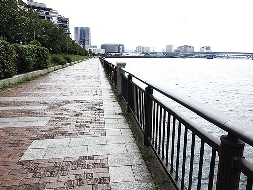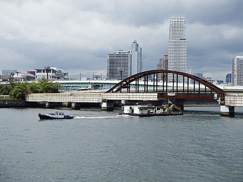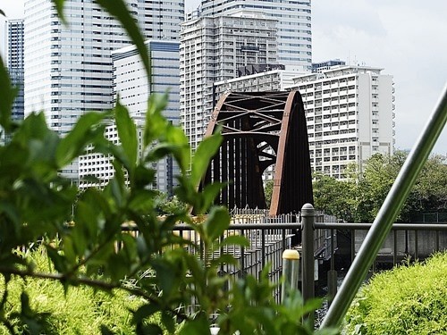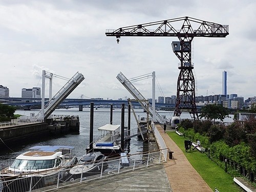 この橋はここら辺に広大な土地を所有していて造船業を行っていた石川島播磨重工業(IHI)の工場への引き込み線の橋である。現在は橋の保存と同時に、ここを歩道にして歩いて渡れるようにする工事を行っている。