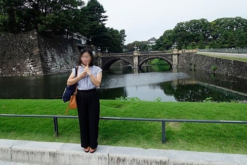彼女は皇居前広場の美しさと、手入れの行き届いた松林に感動していた。