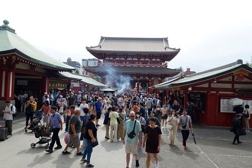 仲見世通りは大混雑で、歩くこともままならない。彼女には初めての日本なので、我慢して浅草寺本堂まで行く。私は「人疲れ」をしてしまい、サンジェルマンに入って一休みとした。仲見世通りのお店はどこでも大繁盛で、コロナでの損失を十分にカバーしていると思う。