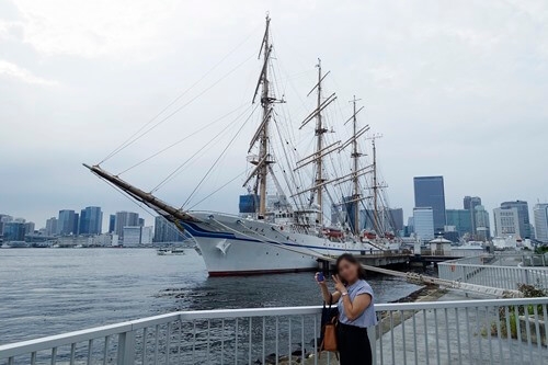 彼女の滞在先の埼玉県は海が無いので、私はわざわざ都バスで「晴海埠頭公園」に案内して東京湾を見せた。丁度、帆船「日本丸」が停泊中で、彼女は生まれて初めて「帆船」を見たそうだ。