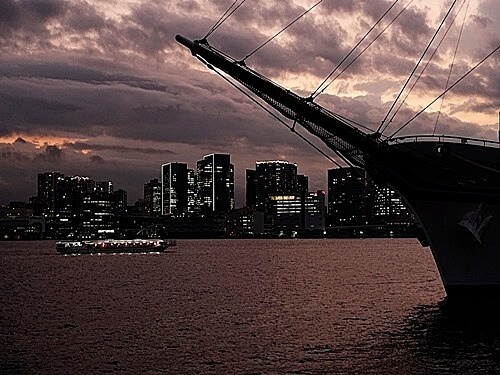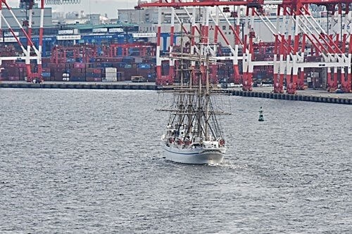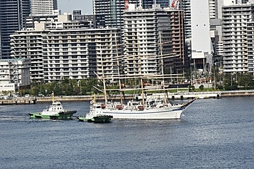 日本丸は東京のビル群を背景に、少しづつ私の方に近付いて来る。