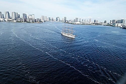 東京湾内で帆を張ることは禁止されていて、出来ないようだ。