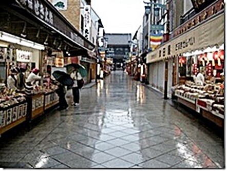 雨のせいか、参拝客はほとんどいない。参道の両側の土産屋も手持ちぶたさである。