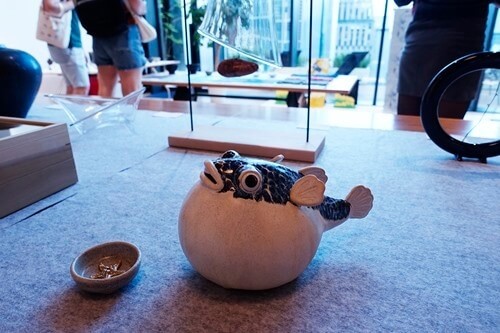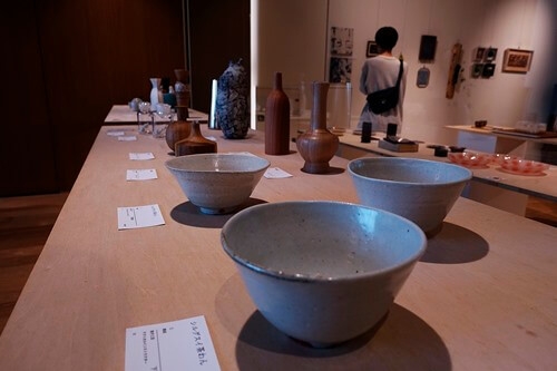 次は「器」で、東京芸術大学・工芸科」の教員と生徒の作品が、伊東屋に展示されていた。10階に専用の展示場を設けて、数多くの茶器が並べられている。
