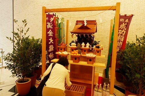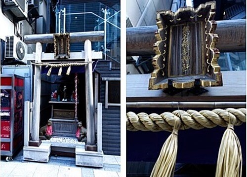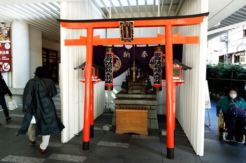 その前は、一般の人が参拝出来ない敷地内にあった。現在は地下鉄に乗る時のエスカレーターの横にあるので、誰も簡単にお参りできるようになった。