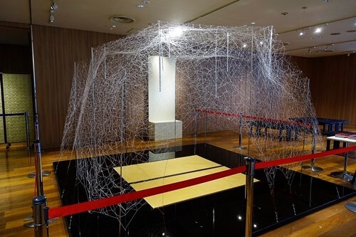 茶室は網のようなもので作られていて、透明でユニークな茶室である。