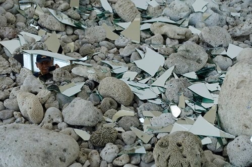 「石ころ」と「割れた鏡」が床に置かれているだけである。