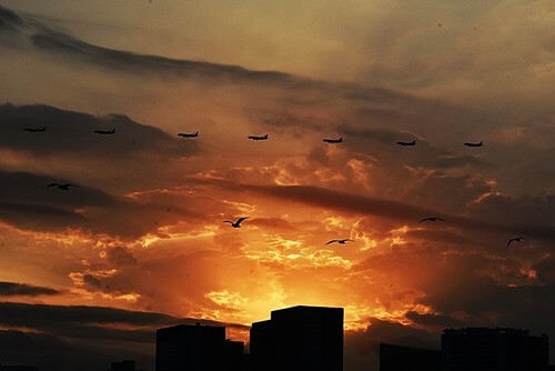 「空をアートする」は、三脚を使って羽田空港に向かう飛行機と、偶然に画面に入った鳥である。