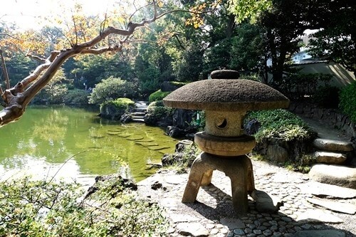 西洋式の公園と違い、日本庭園は「松」、「石」、「水」があるせいか、「静寂」、「落ち着き」、「平和」、「物思い」などを連想させる。