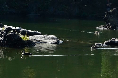 この庭園もとても美しいが、浜離宮恩賜庭園と比べると、かなり規模は小さい。池には鯉が泳ぎ、鴨が美しい波紋を残して進んで行く。