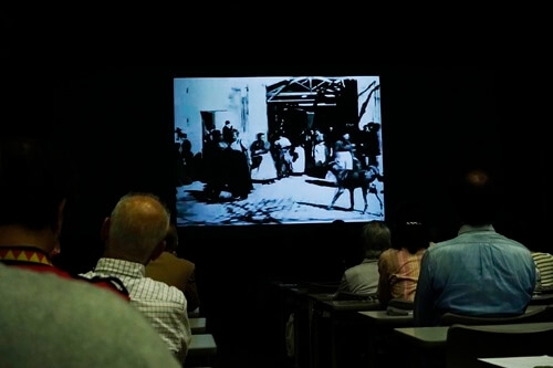 次に映像の三要素は「写真・動き・上映」であったが、これも当り前と思った。教室を暗くして映像を映し出してからは段々と面白くなって来て、世界で最初の映画を見せた。それは1895年にリュミエール兄弟が、パリ・グランカフェで上映したものだった。工場の門が開き、人が大勢出て来る。そしてまた門が閉じるという内容だった。