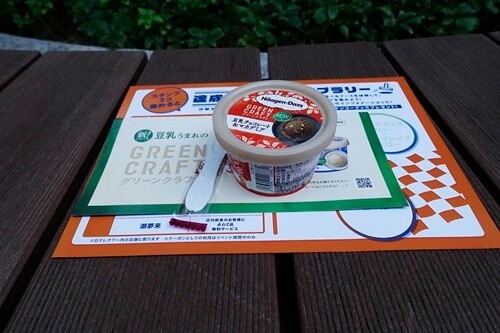 「なにごとか?」と思ったら、ハーゲンダッツの新製品の宣伝のための無料配布だった。私ももらって食べてみたら、「豆乳で作ったアイスクリーム」だそうだが、普通のアイスクリームと変らない味がした。