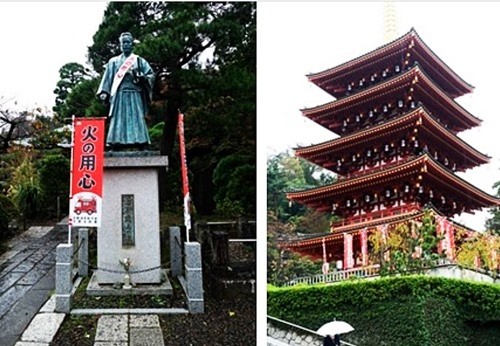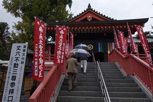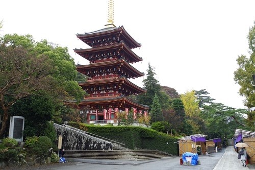 高幡不動尊の山門を入った左側には、新選組で活躍した土方歳三の銅像が立っている。その先には立派な五重塔が見える。境内は広く、アチコチに建物がある。それぞれが由緒正しい歴史があるようだ。小雨にも拘わらず、七五三のお参りに来た若い夫婦と子供の姿が目立つ。