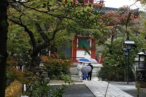 傘をさして「七五三」のお参り