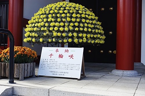 やっと見付けた菊の花は、社務所の前の「千輪咲」だった。