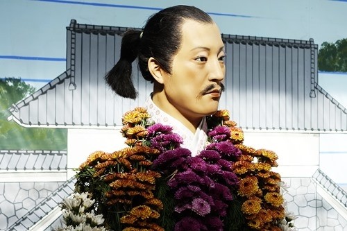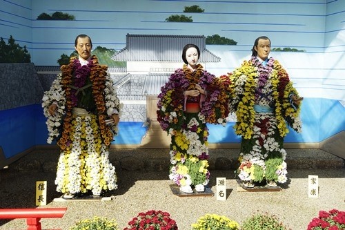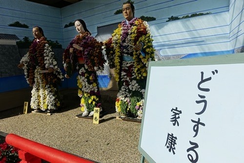 落ち着いてみたら、今年のNHK大河ドラマの「どうする家康」に登場する「家康」、「信長」、「瀬名」の3体だった。この菊人形のスポンサーは、清水建設だった。