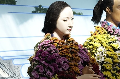 この日は菊人形は見頃で、他の菊の花の中には枯れかかったものもあった。