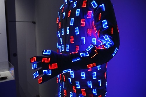 説明書によると「LED9,000個、450個のデジタル数字による初期のプロダクトから、LED17,280個を搭載した縦6.8m、横2.6mの布ディスプレイまでを総合的に展示します」とあった。