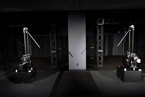 次に更に奥の会場に案内された。そこには2台のロボット状の機械が設置されていた。説明書によると「一定時間毎には独自の制御システムが稼働し、会場内の全プロダクトと音楽とが連動するインスタレーションへと変貌します」とあった。