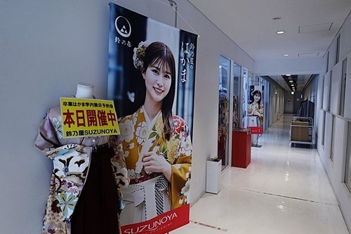 それもかなり広い。入口に若い女性の大きな写真があり、「本日開催中」とあった。よく見たら、私も聞いたことがある和服店の「鈴乃屋」の部屋であった。
