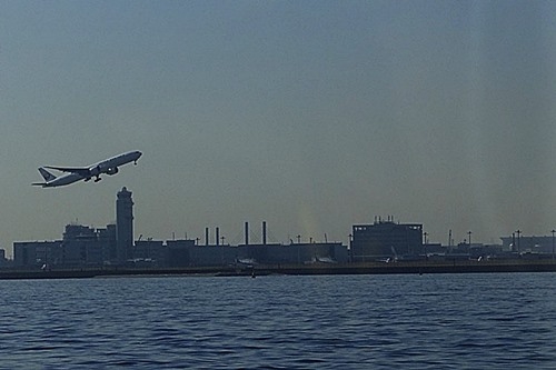 いつものように右側に大型クレーンが作業をする姿を見ながら、羽田空港の近くまで行く。そして左に旋回して、入り組んだ埋立地の中を進む。大きな島の全てが、埋め立てられたゴミで作られた造成地である。海の上で障害物が無いので、色々なものが見える。