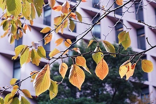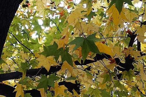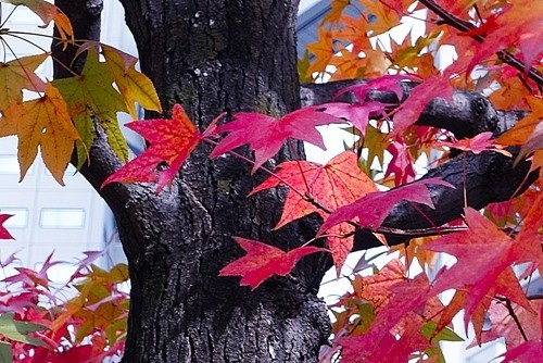 1本の木にある葉が、緑から黄色、赤と段々と変化して行くようだ。