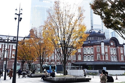 東京駅の前に行ったら、7本の茶色くなった葉が付いた木が見えた。