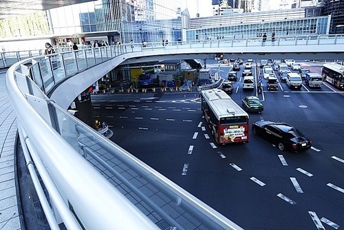 都バスを降りて回廊式の横断歩道橋を渡ると、約5分だった。