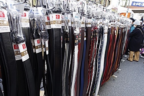 女性用品が多いが、男性用のベルトが大量に売られていた。