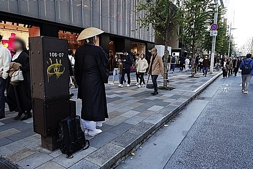 銀座の坊主はニセモノではないと思うが、4丁目より6丁目の方が喜捨の効率が良いと考えたか?