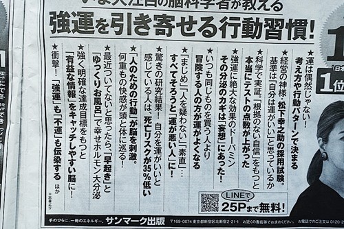 特に週刊誌などは「見出し」でほとんど内容が分かり、買う必要が無いくらいだ。ある日の広告で本の宣伝が出ていた。