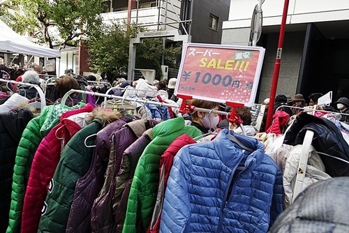多くは衣料関係品だが、お菓子・瀬戸物なども売っている。