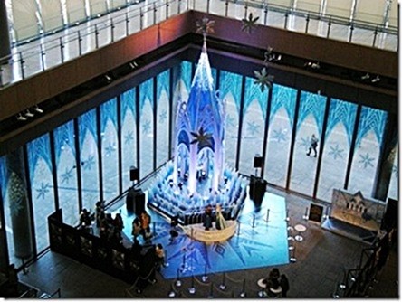 そして1階の「アナと雪の女王」の氷の城の前で、3人で記念撮影をした。