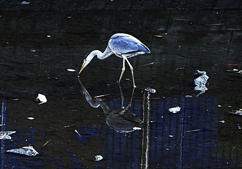 『住吉神社の近くの佃堀に行ったら、アオサギがいた。おまえさん いま一体何が一番欲しい。あれもこれもじゃだめだよ。ただ1つに的をしぼって 言ってみな 小魚だろう。獲れない理由は言うな そのうち そのうち べんかいしながら日がくれる。水面に映った姿がうつくしい 自分の姿をよく見てみな』