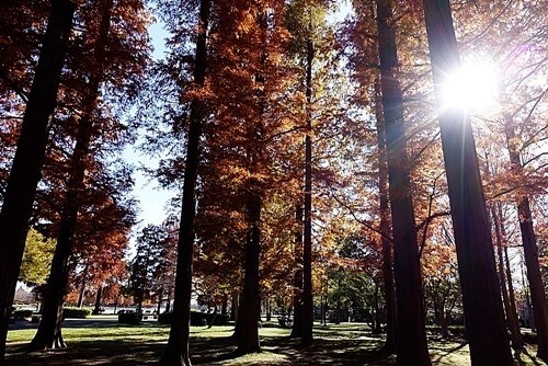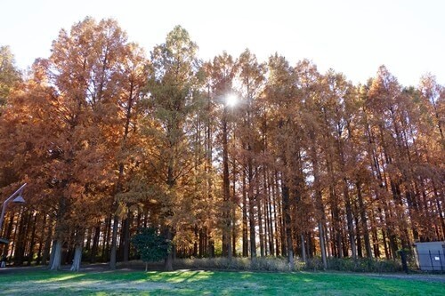 ここにはメタセコイアの林があり、およそ1800本もの木がある。