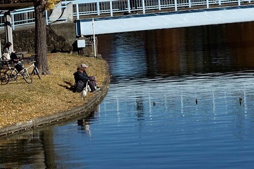 釣り堀を嫌い、園内の池で釣る人(2)