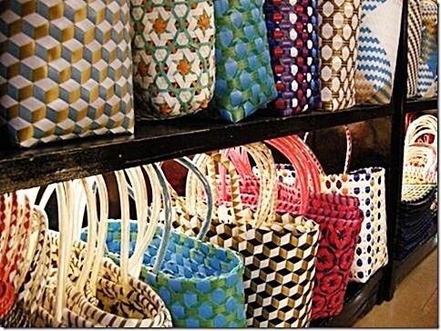 日本人観光客に人気の荷造り用プラスチック紐の籠。