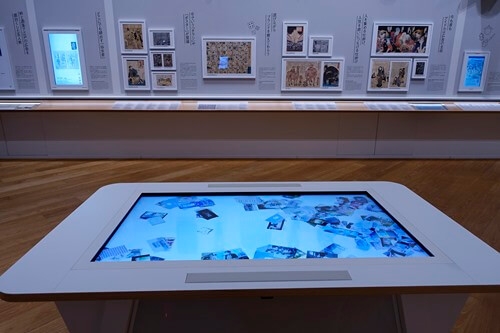 ところどころに「デジタル・テーブル」というものが置かれていて、画面に触るとその映像が大きく映し出される。壁の面にはポスターの間のところどころに、小さな液晶画面がはめ込まれていて説明が見られる。