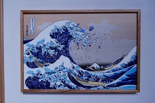 中ほどに葛飾北斎の浮世絵「神奈川沖浪裏」があった。