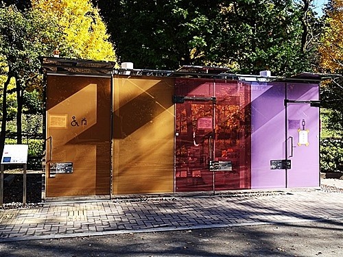 坂茂が設計したのが、2ヶ所の透明トイレである。
