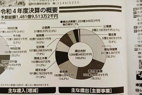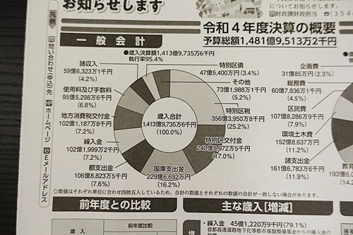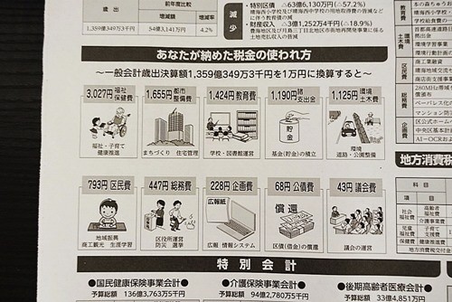 今回の区報の1面には、中央区の財政が分かる記事が出ていた。