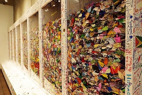 中に入ると、そこには大量の折り鶴が展示してあった。
