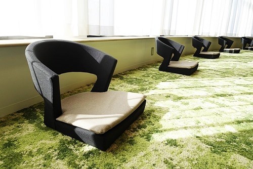 「はるみらい」は隣のゴミ焼却場の熱源を利用しているので、温暖浴スタジオは床暖房で絨毯が敷いてあり横になれる。座椅子のようなものも置いてあり、そこでユックリできる。