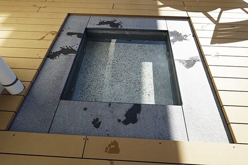 1階の折り鶴の前には「中央区観光写真コンテスト」の入選作が飾ってあった。