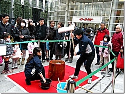 お正月の演出か、餅つきのイベントをやっていた。